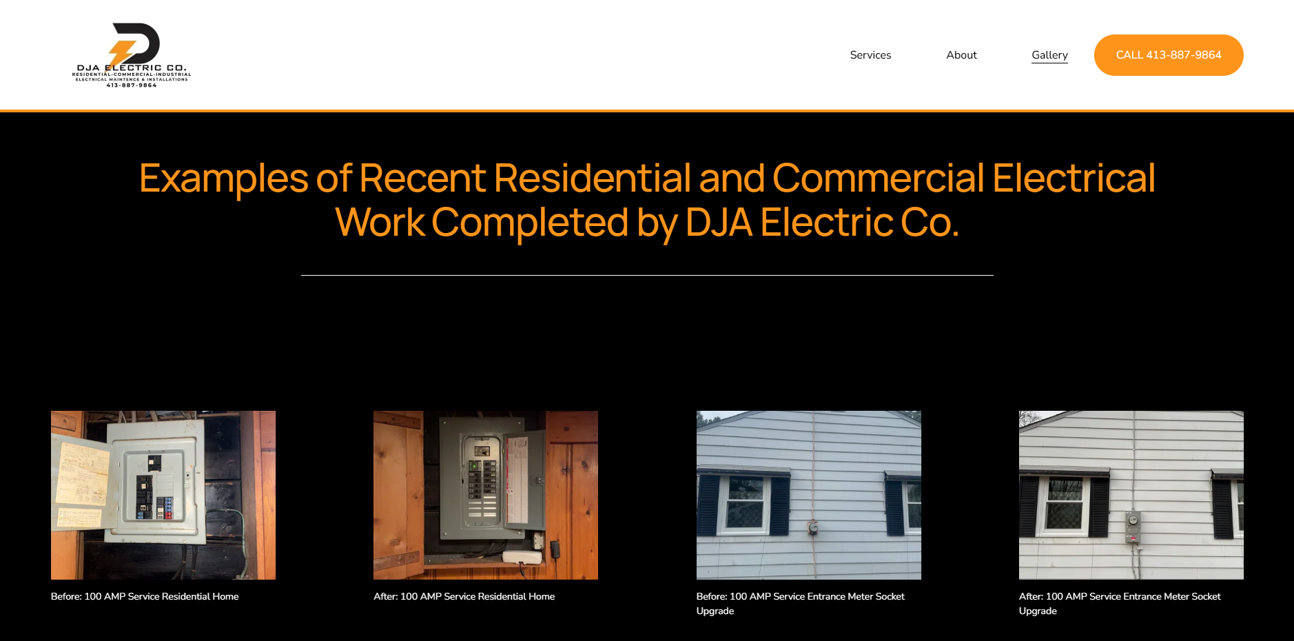 Gallery section on the DJA Electric website showcasing examples of the company’s electrical work