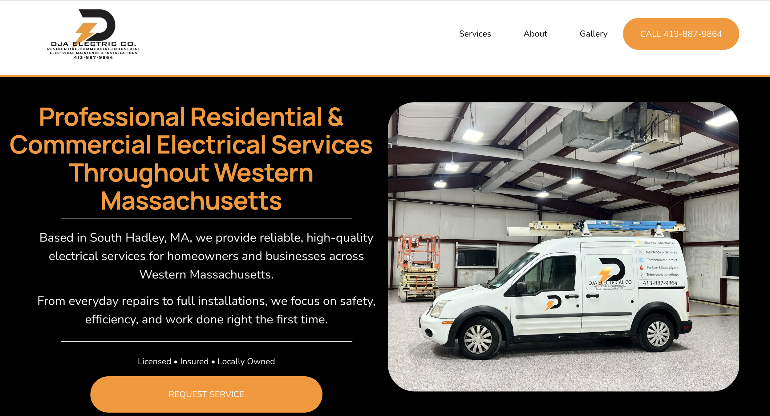 DJA Electric Co. homepage designed to highlight services and drive customer inquiries